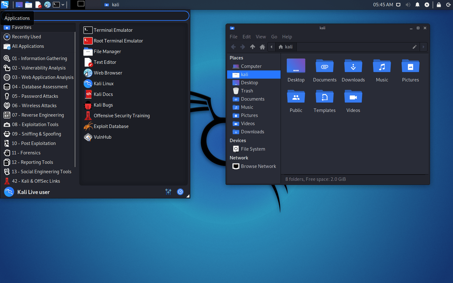 Log in to Kali Linux and enjoy the operating system.
